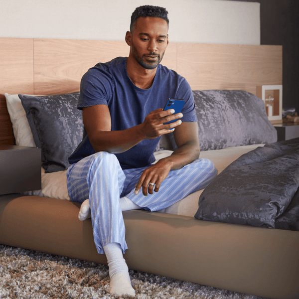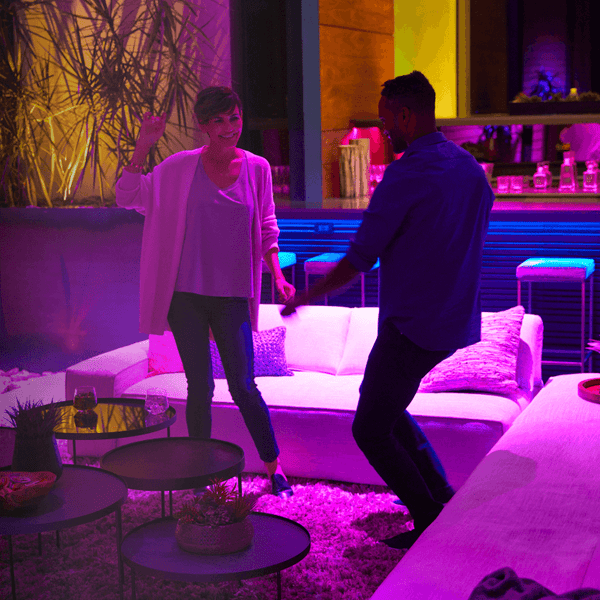 Aconchegue-se com seu programa favorito e ative a cena "Boa Noite" usando sua voz para ajustar as luzes no conforto da cama.