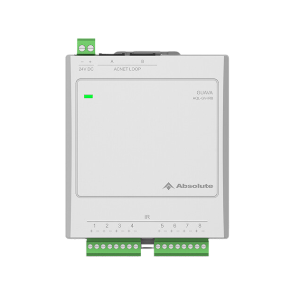 Single Zone Smart Airs Conditioner Controller, é um módulo controlador inteligente de uma zona para integração de aparelhos de ar condicionado. Possui uma saída para emissor de IR e duas entradas para sensores de temperatura, AQL-GV-SENSOR2, que permitem feedback real de temperatura.